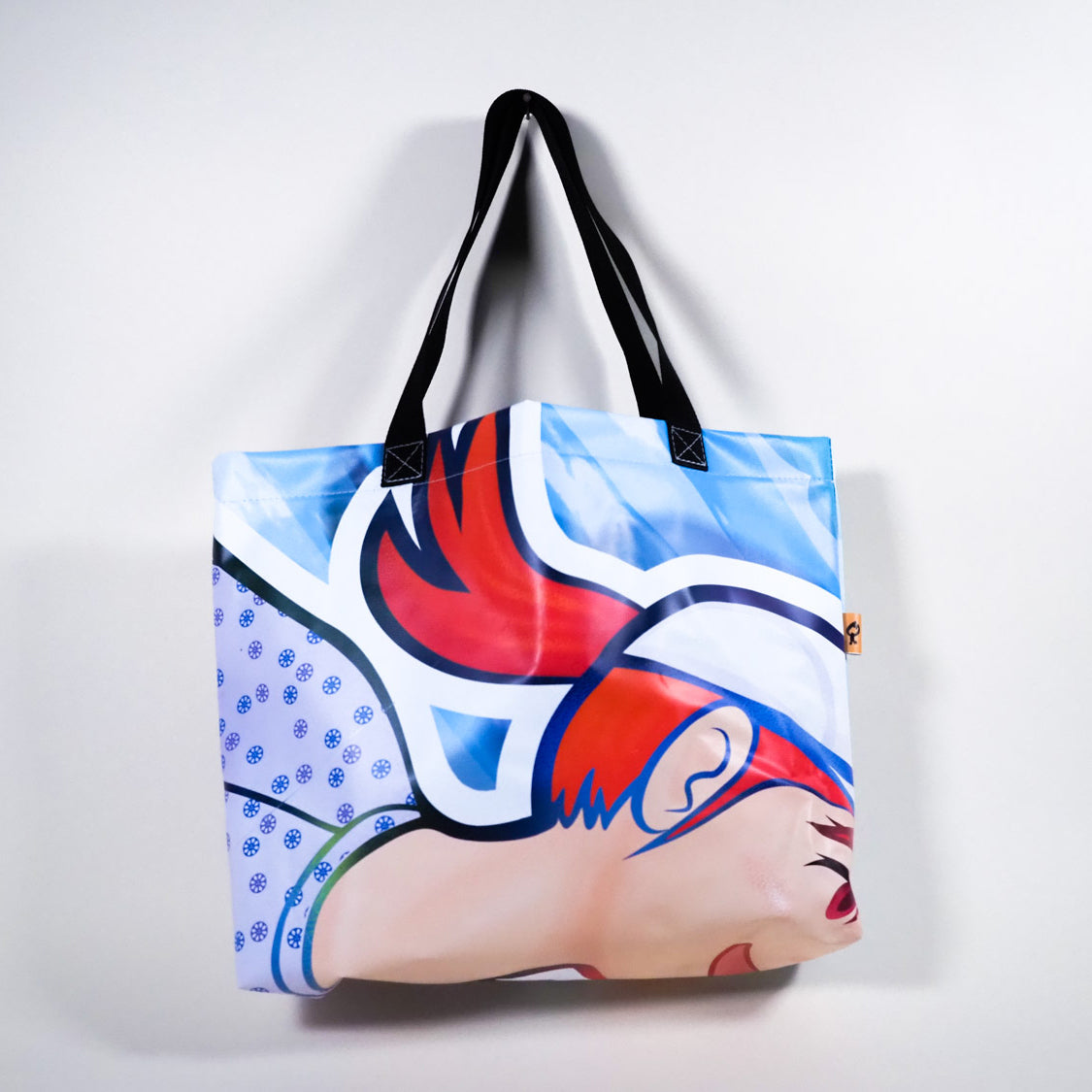 トートバッグタイプ看板から誕生したカバンです。この商品は、エコリサイクル商品です。ミスプリントしたものや、一度使用したものをキレイにしてリメイクしました。 看板に使う生地(ターポリン)を使用しているので水にも強く、とても丈夫です。